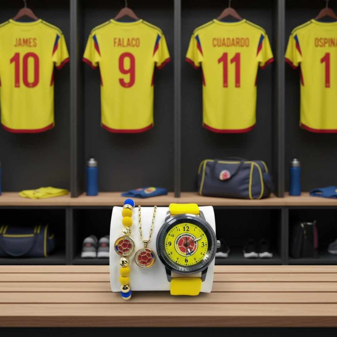 Este Combo Selección Colombia no es un accesorio más… es tu bandera, tu orgullo y tu pasión convertidos en un regalo que llevas contigo cada día. ❤️⚽ Imagina entrar al estadio o reunirte con tus amigos para ver el partido